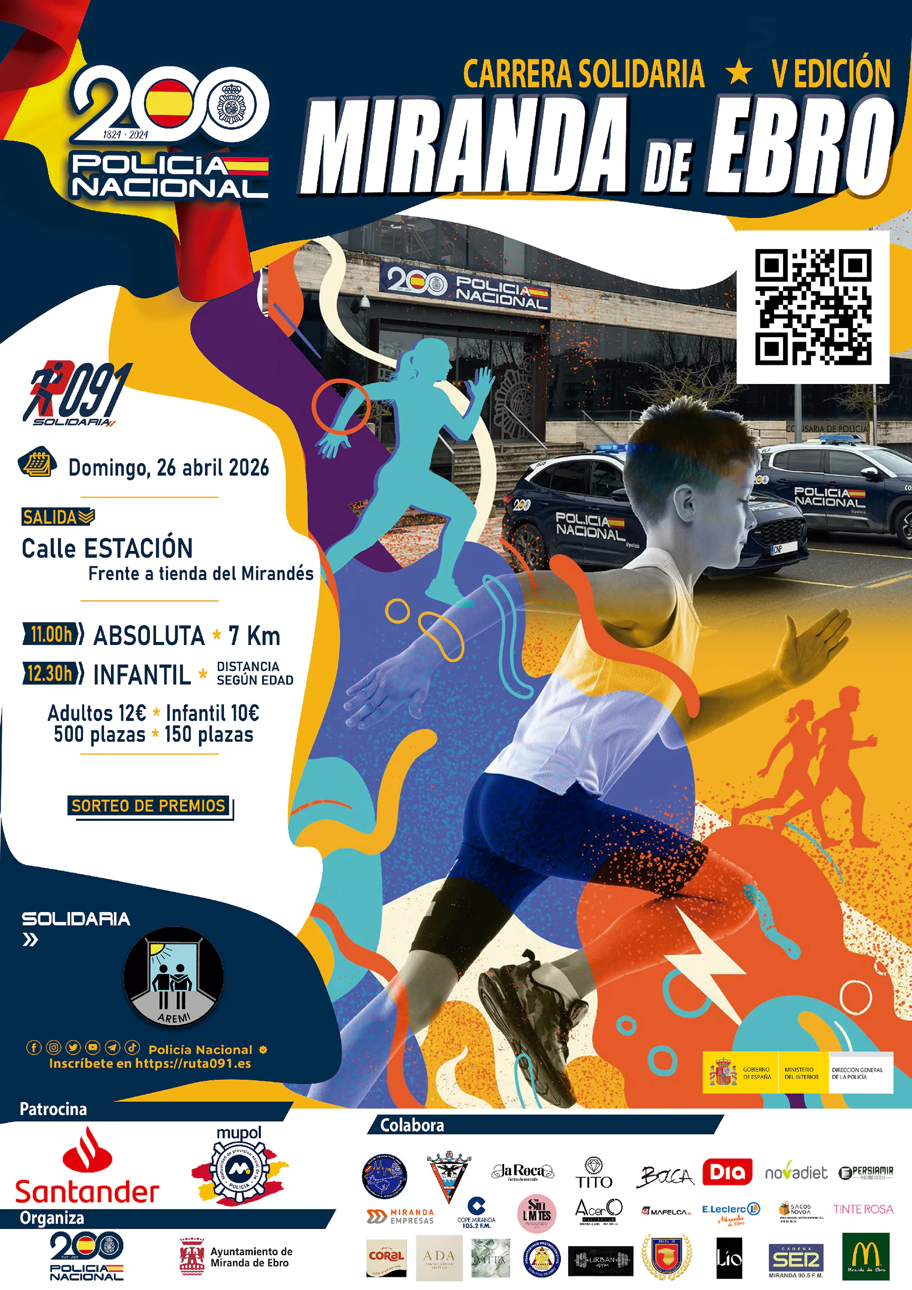 El 26 de abril de 2026, a las 11:00 horas, la Comisaría Local de Miranda de Ebro celebrará la V Carrera Solidaria “Ruta 091”, bajo la autorización del Excmo. Ayuntamiento de Miranda de Ebro.