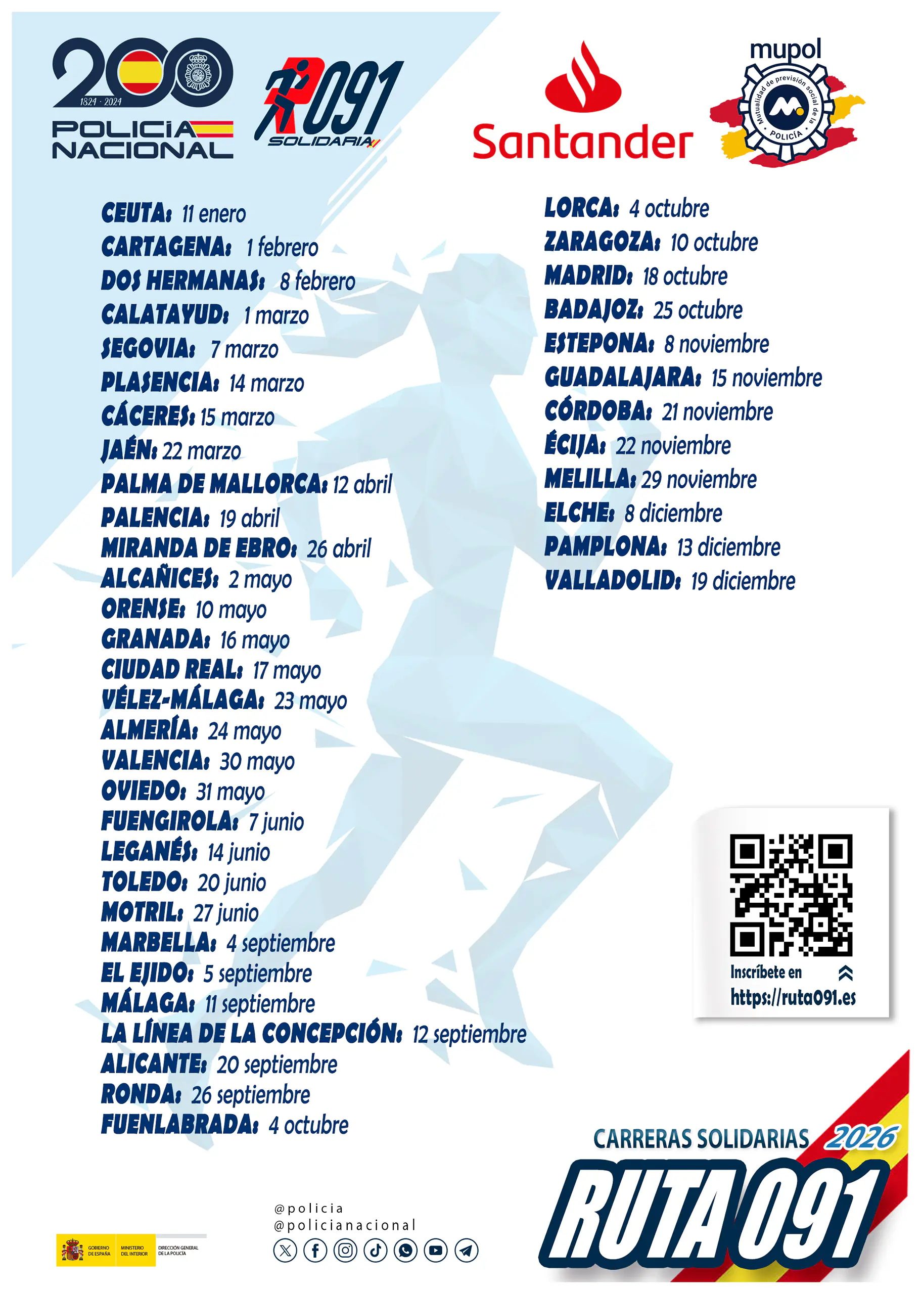 El día 11 de enero de 2026 la Jefatura Superior de Policía de Ceuta celebra la III Carrera Solidaria “Ruta 091” de Ciudad de Ceuta bajo la autorización de la Excelentísima Presidencia de la Ciudad Autónoma de Ceuta