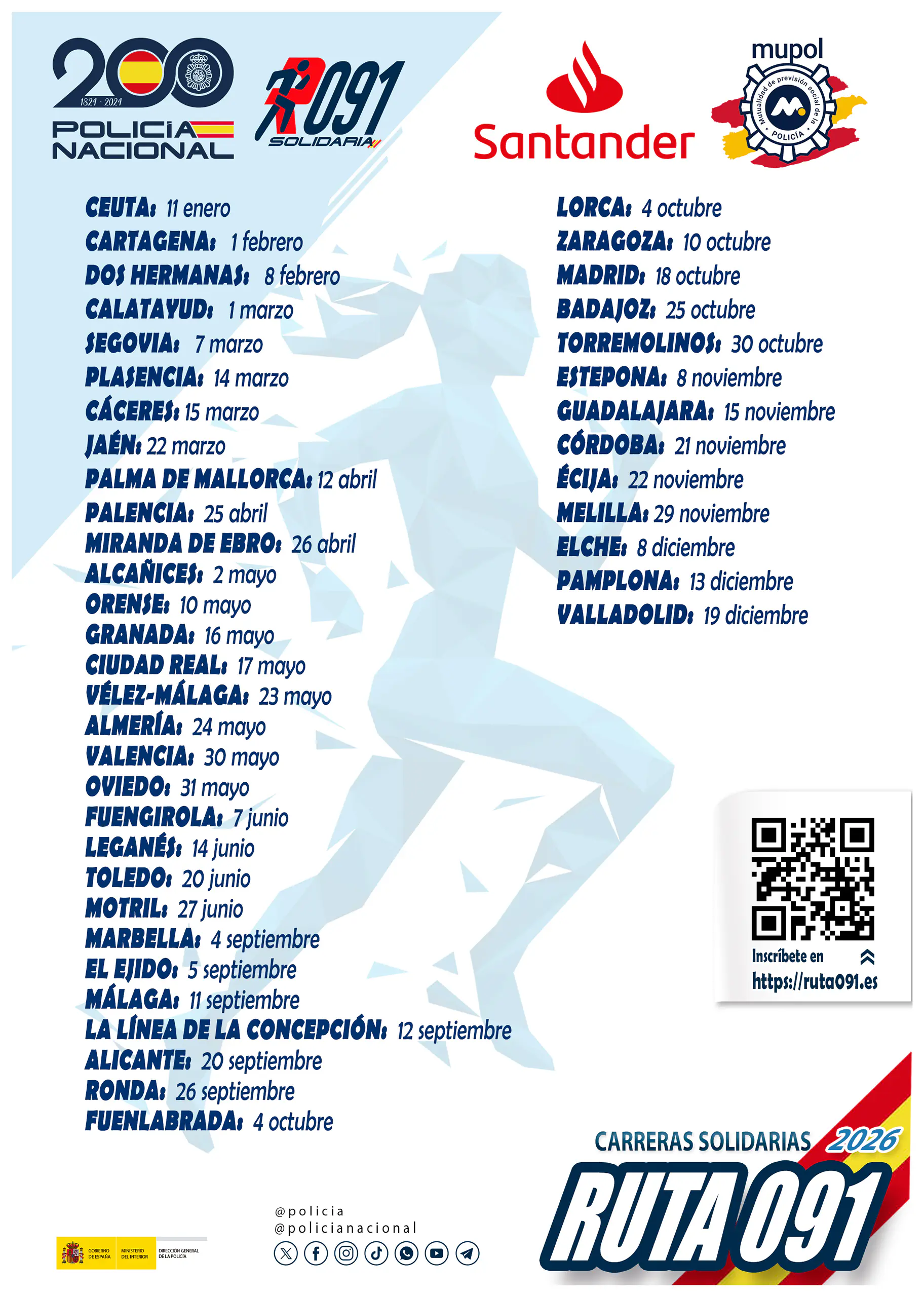 El 1 de febrero de 2026, la Comisaría local de Cartagena celebra la I Carrera Solidaria “Ruta 091” de Cartagena bajo la autorización del Excelentísimo Ayuntamiento de Cartagena.